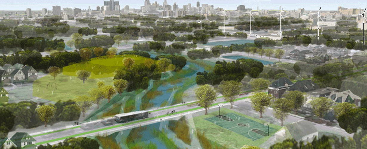 The Bloody Run Creek Greenway Redevelopment Project is a creek daylighting and redevelopment project of a 3,500 acre site that aims to address critical stormwater management needs, spur further development, and create a recreational amenity for the surrounding neighborhoods. This redevelopment project area encompasses built and natural lands on the near east side of Detroit and includes Eastern Market, one of the U.S.’s largest food wholesale and retail markets. Zachary & Associates, Inc. contributes to this revitalization and long-range planning project in partnership with the Detroit Collaborative Design Center, NTH Consultants, Ltd., Adi Shamir, The Mannik & Smith Group, and Urban Resource Alliance. Most recently, the team developed a comprehensive Bloody Run Creek Greenway Redevelopment plan with funding from the Kresge Foundation and the Detroit Brownfield Redevelopment Authority.